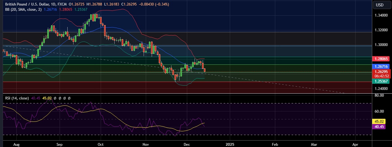 • Support is seen at 1.2623(38.2%fib) and break below could take the pair towards 1.2539(Lower BB).