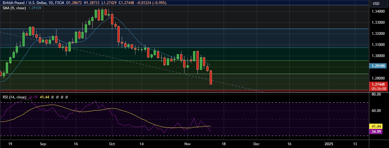 • Strong support is seen at 1.2746(Daily low) and break below could take the pair towards 1.2679(23.6%fib).