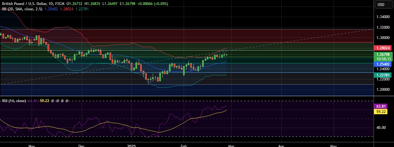 • Immediate resistance is located at 1.2761(38.2%fib), any close above will push the pair towards 1.2803(Higher BB).