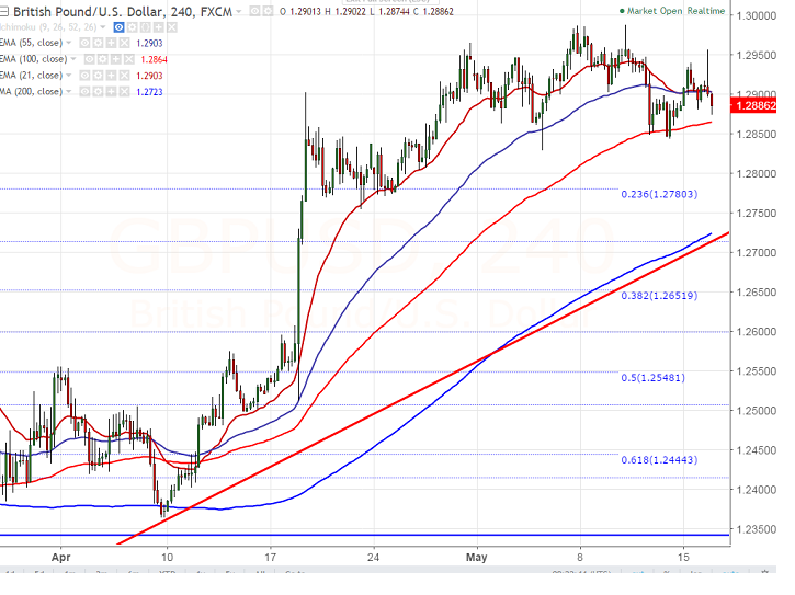 - Cable major support is around 1.2830 low made on May 5th, 2017 and any break below will drag the pair down till 1.27800 (23.6% retracement of 1.2108 and 1.2987)/1.2720 (200- 4H MA).
