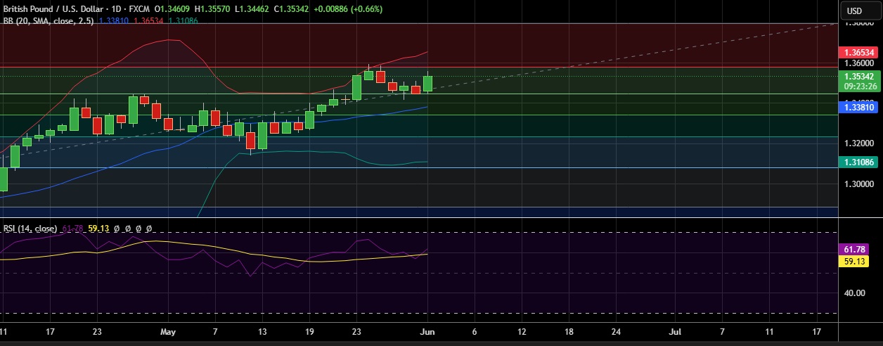 • Technical signals are strongly bullish as 10-day and 21-day moving averages are trending upwards, signaling short-term bullish momentum for GBP/USD