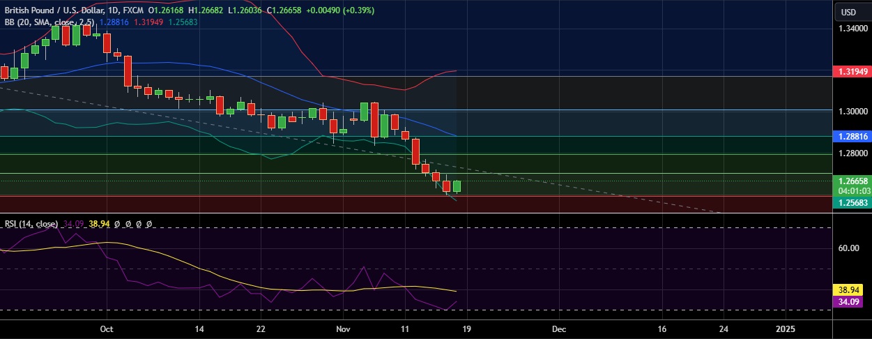 • Strong support is seen at 1.2595(23.6%fib) and break below could take the pair towards 1.2568(Lower BB).