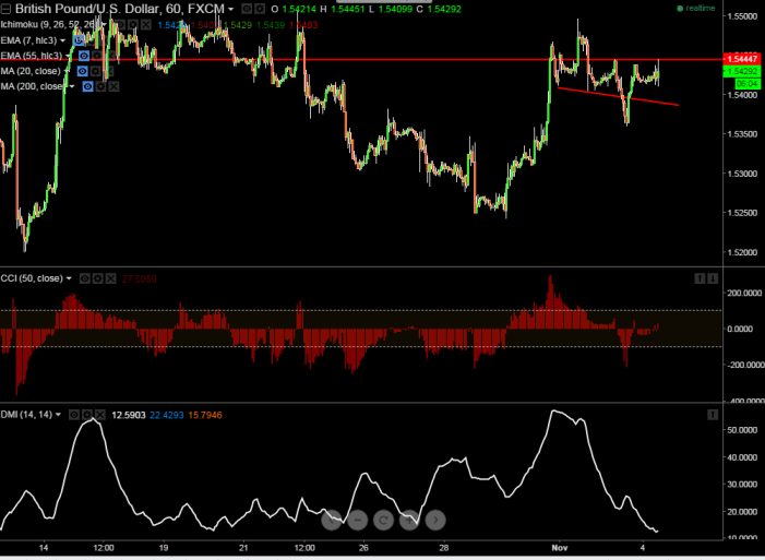- Cable recovered slightly till 1.5445 after release of UK service PMI. It is currently trading around 1.54210.