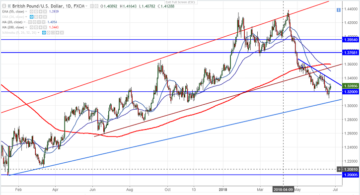 - GBP/USD has shown a nice jump of more than 200 pips from 7- month low of 1.3100 made previous week. GBP was trading slightly higher against all majors on account of hawkish BOE comment. BOE has kept its interest rates unchanged but hawkish surprise came from MPC vote count which raised odds of Aug rate hike. The declining US boind yields and renewed trade war tensions has prompted fresh selling in USD. But Brexit uncertanities is expected to cap further gains in GBPUSD. It is currently trading around 1.3290.