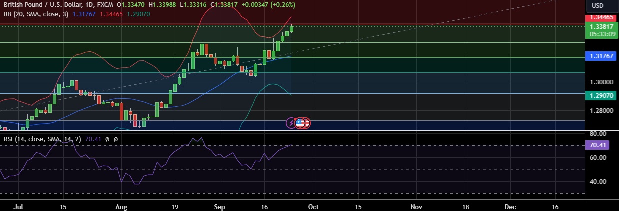 • The pair hit daily high at 1.3402 and was last trading at 1.3380 at (GMT 15:23).