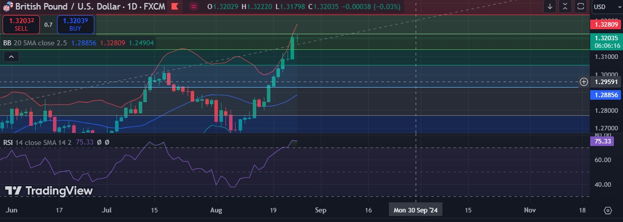 • Immediate resistance is located at 1.3228( 23.6%fib), any close above will push the pair towards 1.3253( Higher BB)