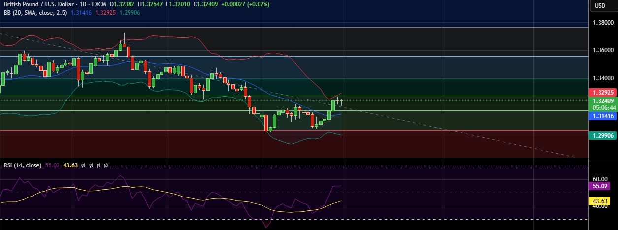 • At GMT 16:50 the pair was last up 0.01% at $1.3238 . it is up around 0.85% for the week so far, on track for its biggest weekly gain since early August.