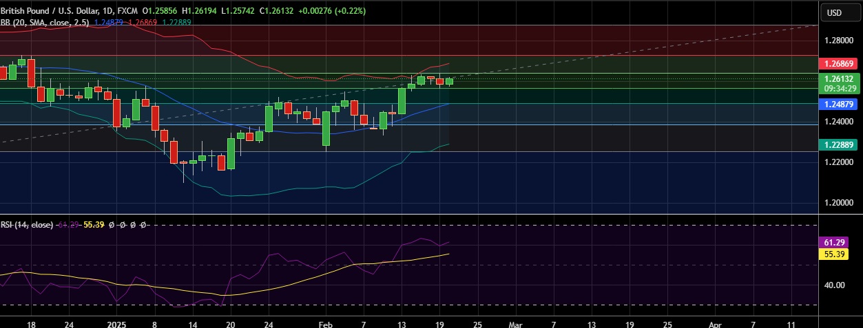 • Immediate resistance is located at 1.2640(38.2%fib), any close above will push the pair towards 1.2687(Higher BB).