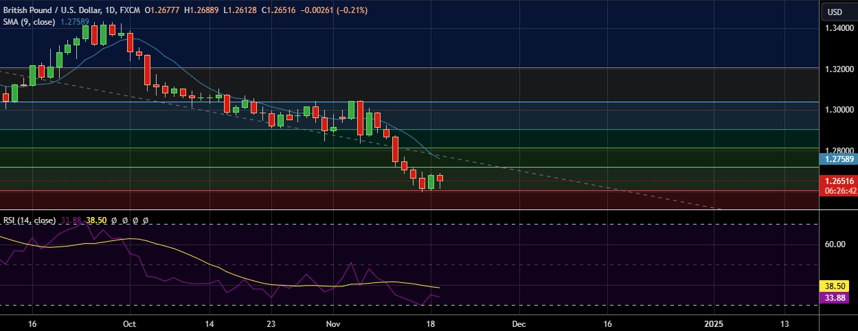 • At GMT 15:31, the pair was trading down 0.23% at 1.2646, retreating from daily high 1.2689.