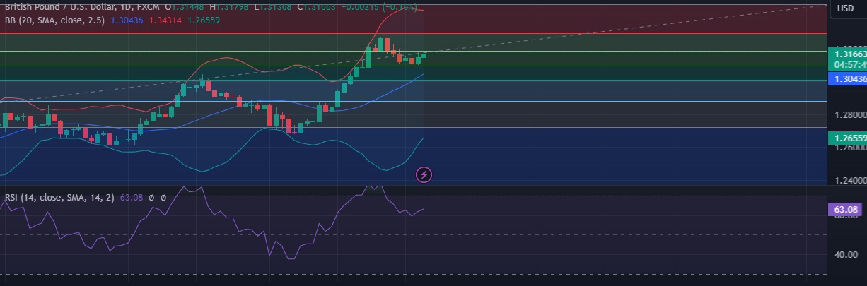 Recommendation: Good to buy around 1.3140, with stop loss of 1.3060 and target price of 1.3200.