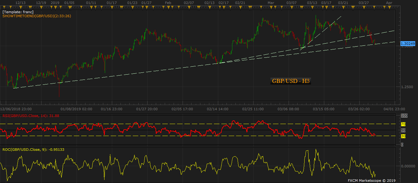 - As a key trend line shows in the graph, which has been in place since February this year, failed to support the pound against the USD amid a stronger dollar and Brexit uncertainties, as expected, sterling has declined to test another trend line, which should provide support around 1.295-1.3 area.