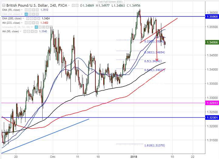 - On the lower side, near term support is around 1.3468 (38.2% fibo) and any break below will drag the pair to next level till 1.3430/1.34020 (61.8% retracement). Short term bullish invalidation only below 1.3330.