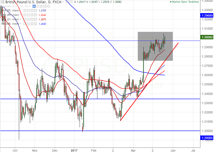 - Cable breaks the psychological resistance at 1.3000 and jumped till 1.30475 highest since Oct 2016 on account of better than expected U.K retail sales. UK retail sales came at 2.3% for the month of Apr compared to forecast of 1.2%. It is currently trading around 1.3003.