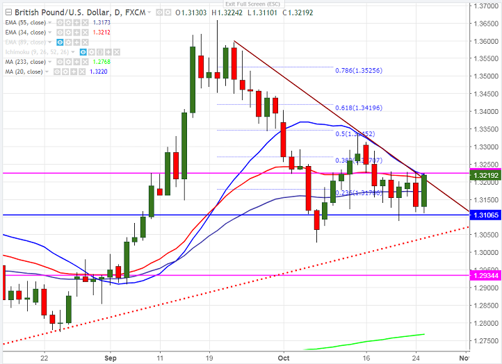 - The near term major resistance is around 1.3230 and any break above will take the pair to next level till 1.330/1.33374 (Oct 13th 2017 high).
