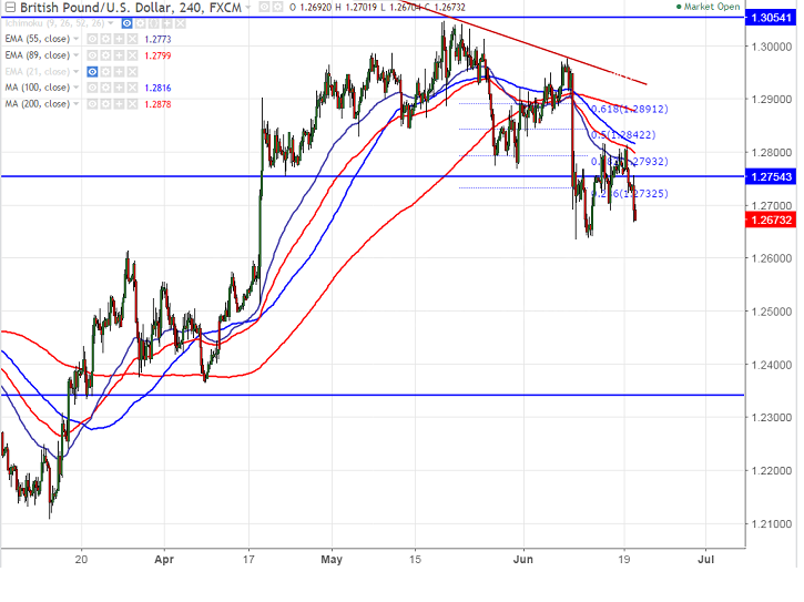 - Cable declined sharply after hitting a high of 1.28144 yesterday. Pound tumbled in the European session after BOE Governor Carney ruled out rate hike in the Mansion house speech. The pair declined till 1.26680 and is currently trading around 1.26725.
