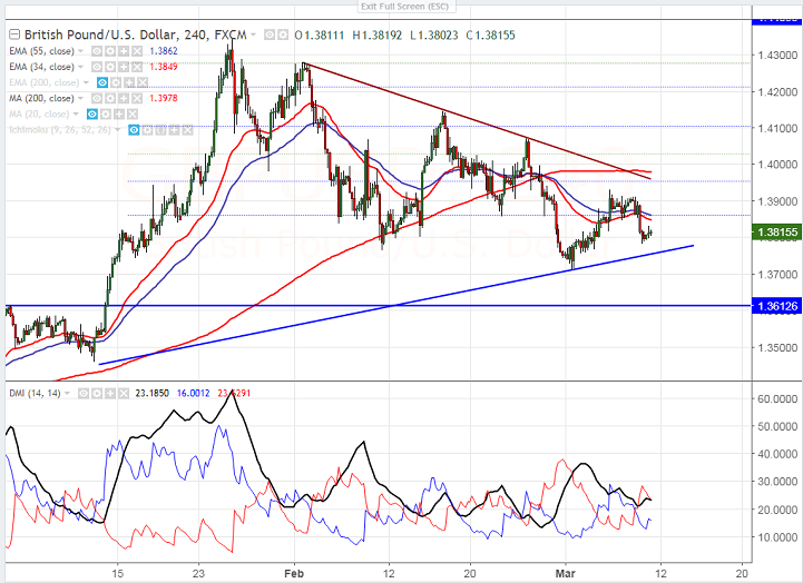 - Cable has shown a decline more than 100 pips till 1.37800 yesterday from the high of 1.39098. The pair shown a minor recovery today morning but weaker than expected UK data has dragged the pair down from the intraday high of 1.38309 and is currently trading around 1.38081.