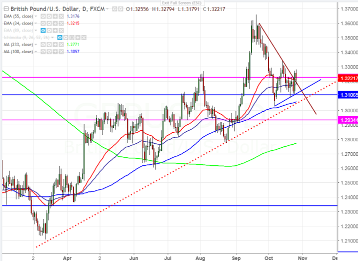 - The near term major resistance is around 1.3230 and any break above will take the pair to next level till 1.330/1.33374 (Oct 13th 2017 high).