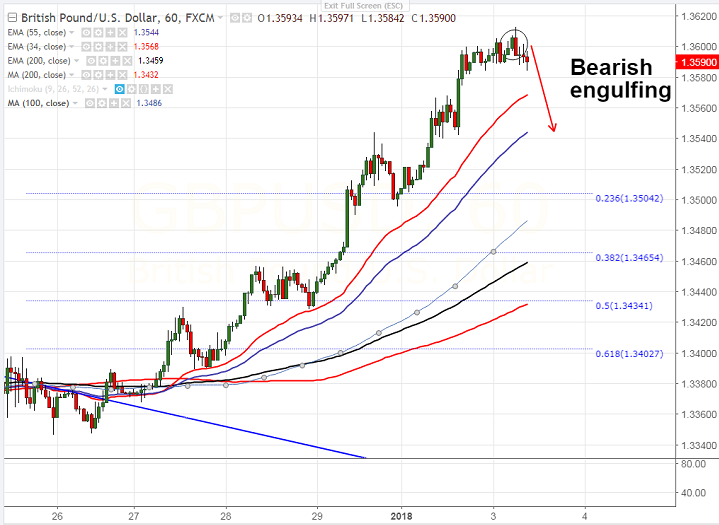 It is good to sell on rallies around 1.3575-80 with SL around 1.3630 for the TP of 1.3500/1.3460.
