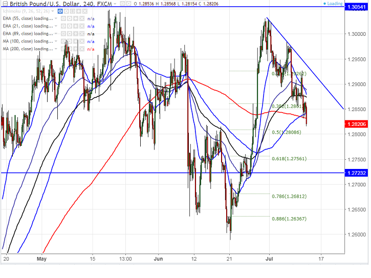 - In the four hour chart, the pair is trading well below Tenkan-Sen (1.2879) and Kijun-Sen (1.2907).