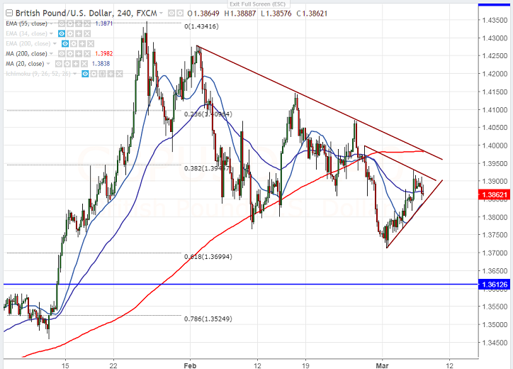 - Cable has shown a jump of almost 200 pips from the low of 1.3711. The pair is trading weak and hits intraday low of 1.38579 and is currently trading around 1.38610.