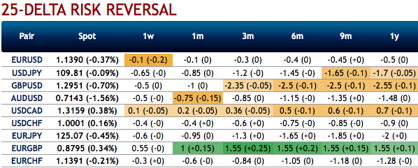 The fresh negative bids in the shorter tenors have been observed to the bearish risk reversal atmosphere in the GBP OTC markets, this is interpreted as the hedgers are keen on bearish risks in the broader perspective.