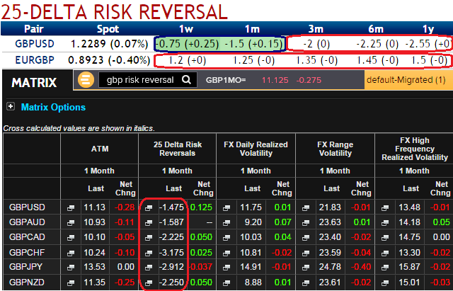 Please be noted that the GBP crosses in the above nutshell, 25-delta risk reversals flashing up with positive numbers in 1w-1m duration that implies the hedgers interests in bullish risks, simultaneously, bearish hedging sentiments in long run remain intact.