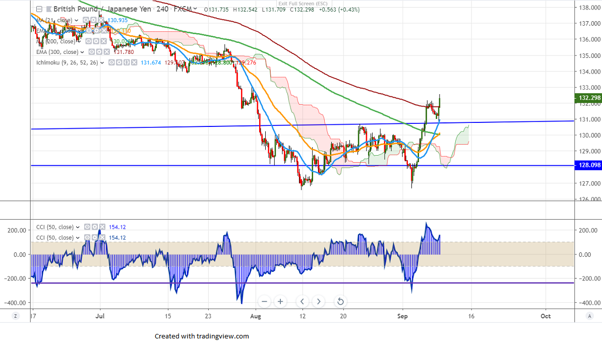 GBPJPY has shown a massive recovery of more than 150 pips for the day after hitting a low of 130.80 level. The jump was mainly due to the strong GBP. The pound sterling hits 6-week high at 1.23820 and was one of the top performers in the past two weeks.It has jumped more than 400 pips from a low of 1.19583.