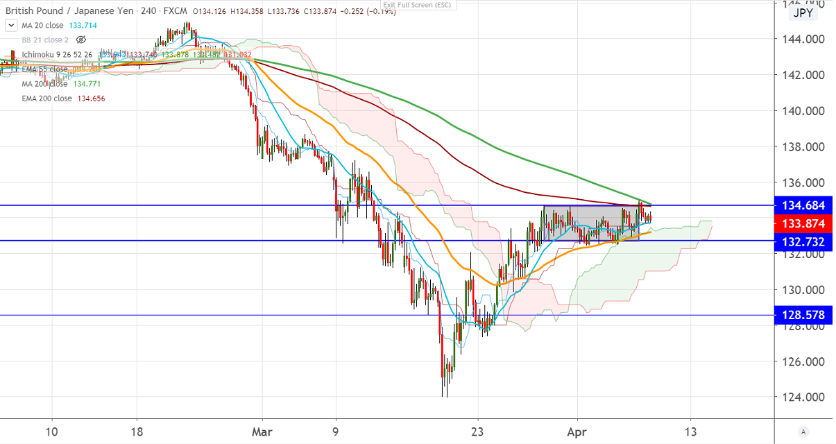 On the higher side, near-term major resistance is around 134.85-135.07 (200-4H MA and Apr 7th high) and any violation above will take the pair to next level till 136/136.90.
