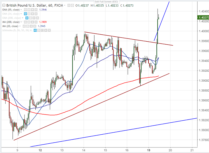 - The near term resistance is around 1.4030 and break above will take the pair till 1.4070/1.4140. The pair should break above 1.4070 for further upside.