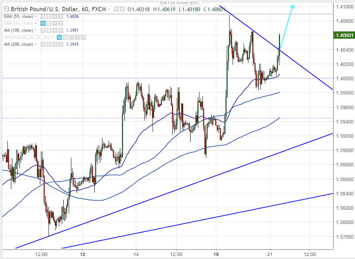 It is good to buy on dips around 1.4050 with SL around 1.400 for the TP of 1.4145.