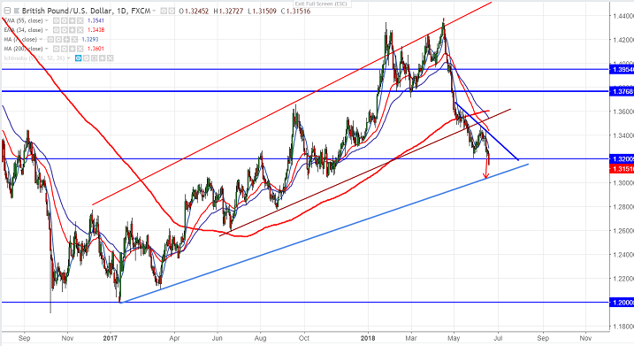 FxWirePro: GBPUSD trades well below 1.3200, dip till 1.3000 is likely