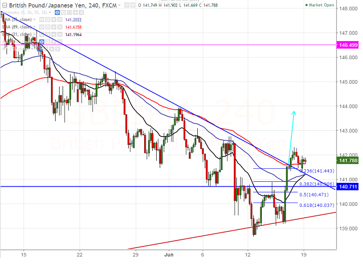 - The near term support is around 141.40 (23.6% retracement of 138.67 and 142.33) and any break below will drag the pair till 140.60 (4H Kijun-Sen)/138.65.