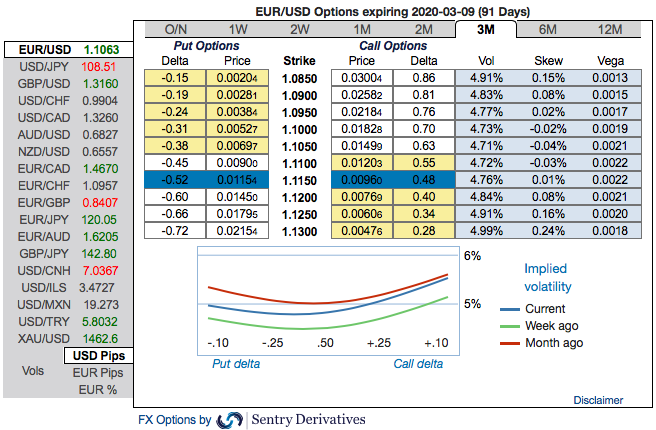 Hedging Strategies: Contemplating above factors, initiated long in 2 lots of EURUSD at the money -0.49 delta put options of 3M tenors, write an (1%) out of the money put option of 2w tenors, (spot reference: 1.1063 level). Short-legs go worthless as the underlying spot price hasn’t gone anywhere. Any slumps from here onwards are to be arrested by the 2 lots of ATM long-legs.