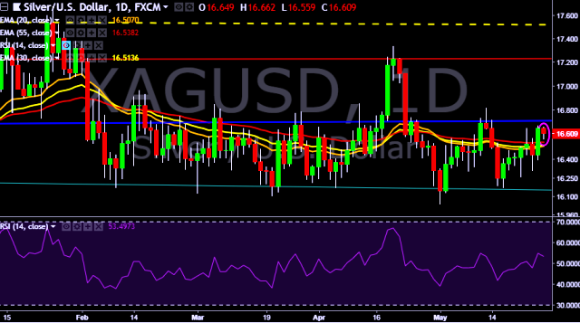 We prefer to take long position on XAG/USD around $16.58, stop loss $16.53 and target of $16.80.