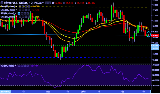 We prefer to take short position in XAG/USD around $16.48, stop loss $16.62 and target of $16.10/$15.90.