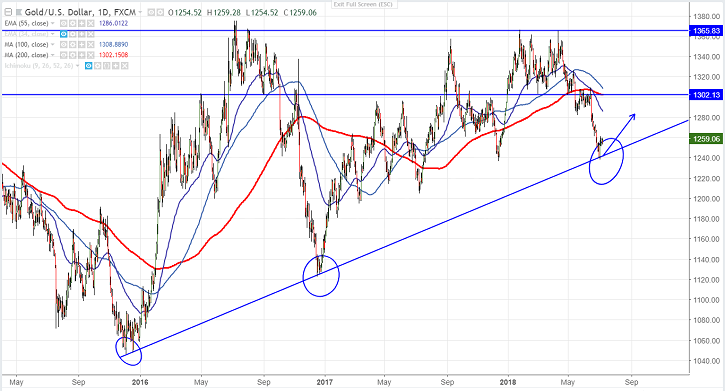 - The near term resistance is around $1260 and any convincing break above will take the yellow metal till $1270/$1275 (23.6% fib).