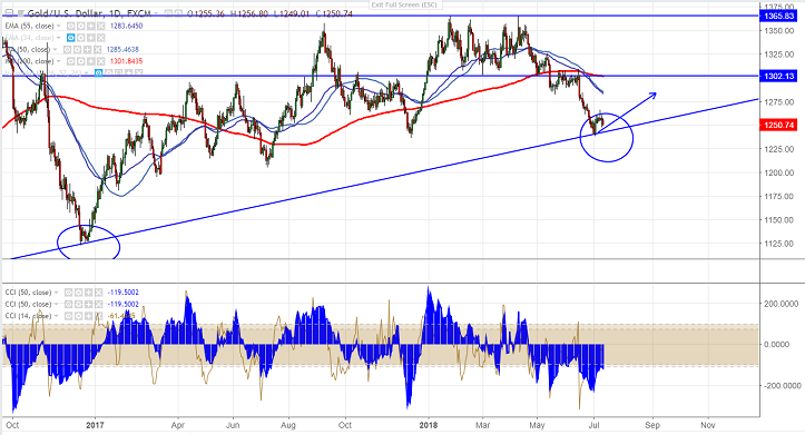 - Gold has declined almost $20from the high of $1266 on account of strong US dollar index. The yellow metal has formed a temporary bottom around $1237 and shown a recovery of more than $25.US is planning to impose further tariff of $200 billion and global stock markets has lost more than 0.5% after the escalating trade war.The increase in geo political tensions might increase demand for safe haven assets such as gold. US dollar index has gained 70 pips from the low of 93.71.It is currently trading around 94.22.The index should break above 95.53 for further bullishness.