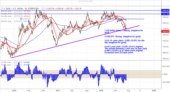 It is good to sell on rallies around $1230-32 with SL around $1240 for the TP of $1201/$1165.