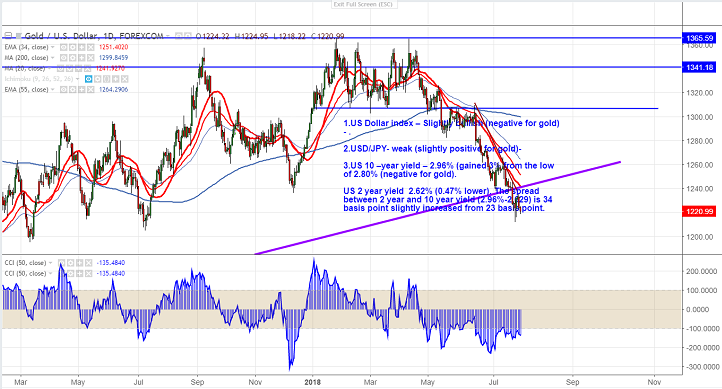 - US 10 –year yield – 2.96% (gained 3% from the low of 2.80% (negative for gold).