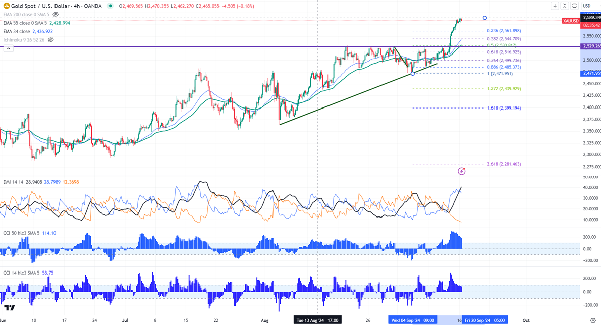 Gold hits fresh all-time high due to fed rate cut hopes. It hits a high of $2589 and is currently trading around $2584.
