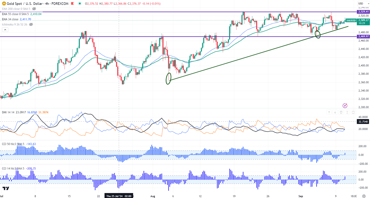 Gold showed a nice jump above $2500 on rate-cut hopes. It hit a high of $2515 at the time of writing and is currently trading around $2509.65.