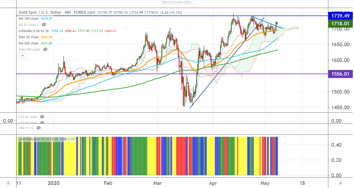 The immediate resistance is around $1723, any indicative break beyond targets $1740/$1760/$1775.