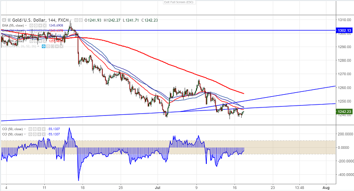 - The near term resistance is around $1245.80 (55-144 min EMA) and any convincing break above will take the yellow metal till $1250/$1258 (200- 144 min-MA)/$1266.