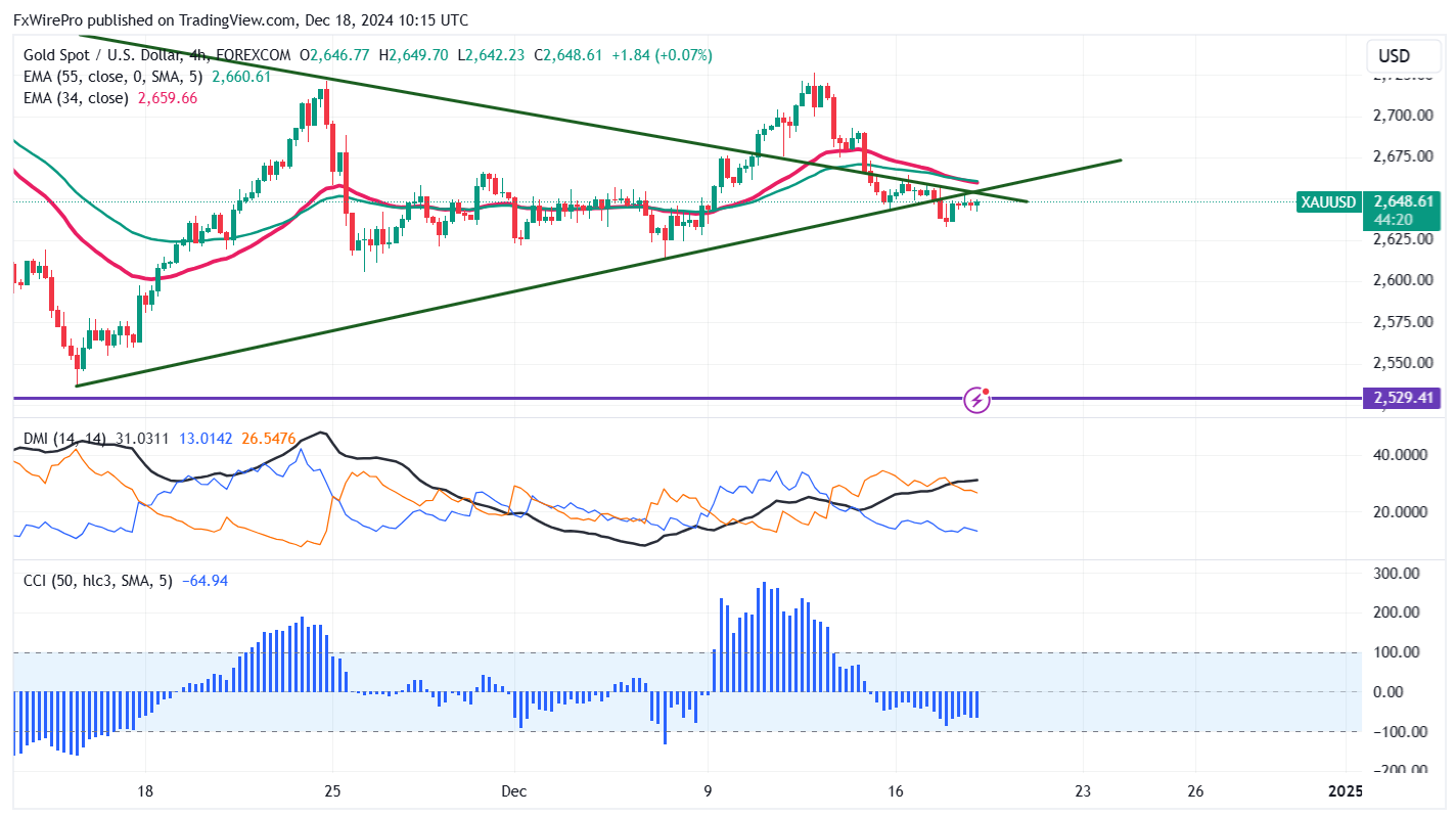 Gold prices lost its shine due to a strong U.S. dollar, hitting a low of $2,633 at the time of writing and currently trading around $2,639.