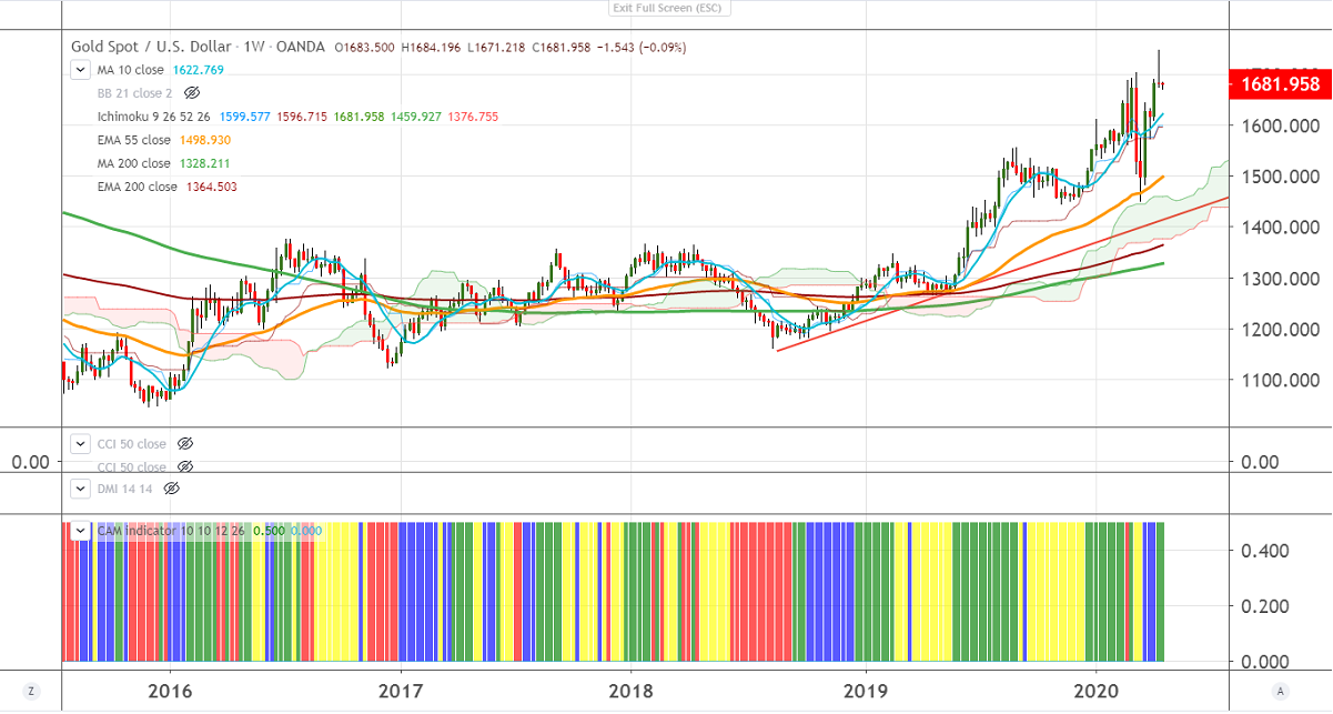 Gold has lost more than $70 from a previous week of high $1747 on a slight surge in the global stock market. It hits a low of $1671.60 at the time of writing. The major factors to be watched are