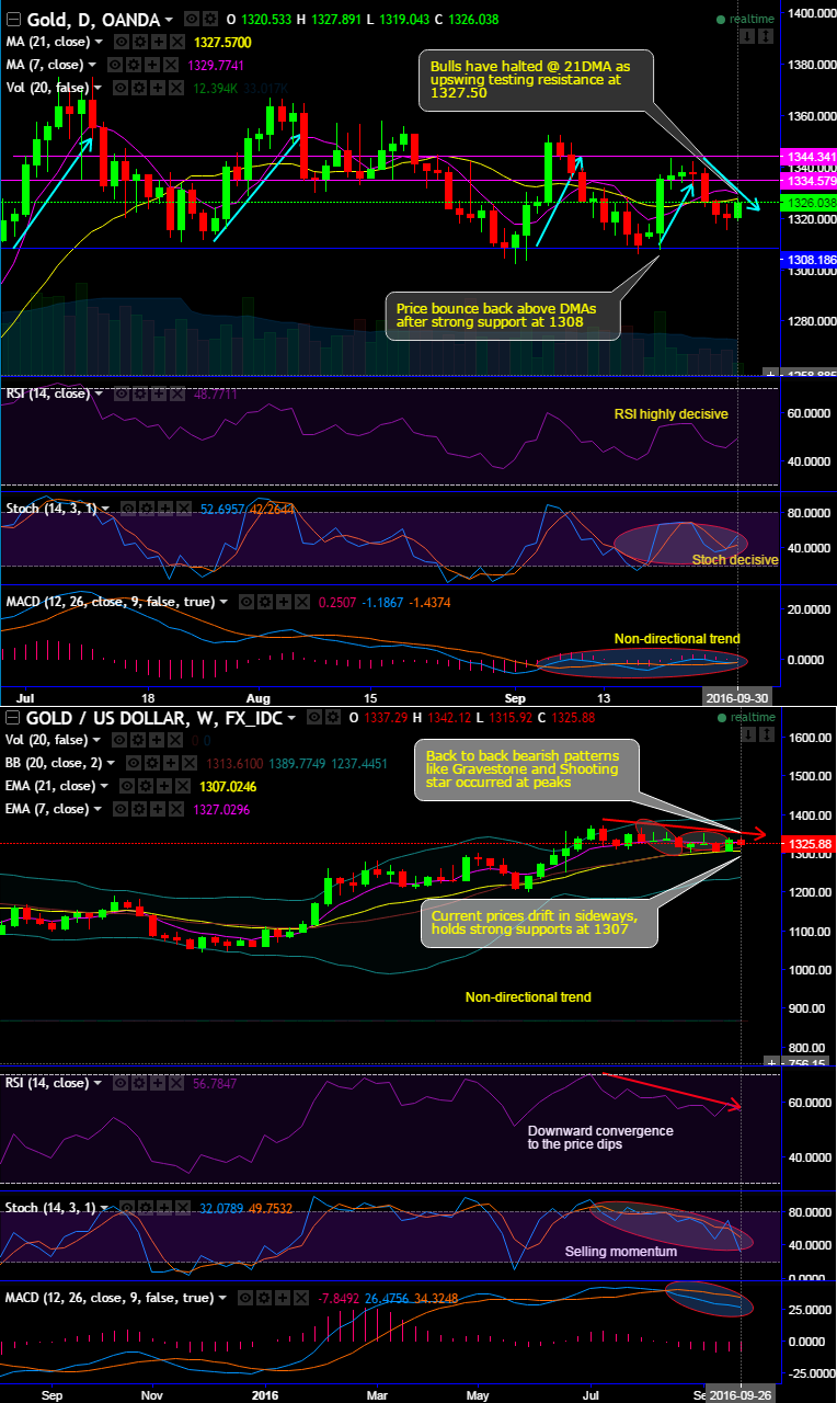 But for today, the prices are bouncing back to the current levels of 1326.730; the current prices are sensing resistance at 21DMA levels.