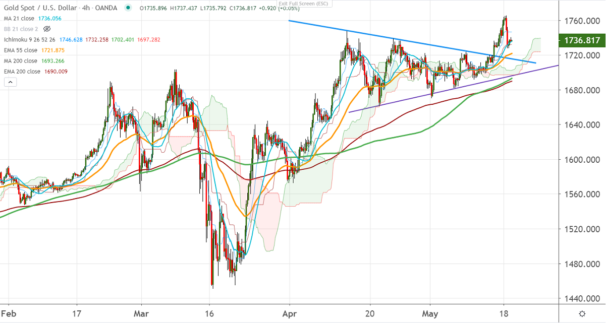 It is good to buy on dips at around $1723-25 SL around $1710 for the TP of $1770.