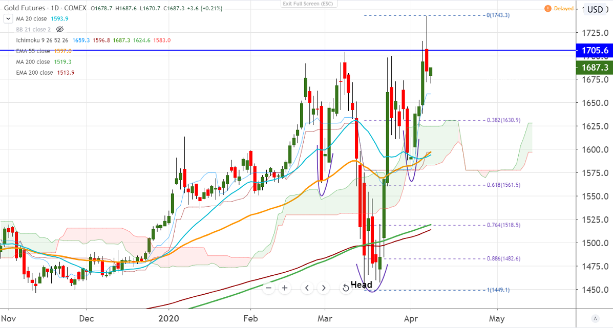 Gold futures have declined more than $70 after hitting year high at $1742. The decline was mainly due to profit booking and a nice recovery in the equity market. US markets especially S&P500 surged more than 25% from low of 2181.