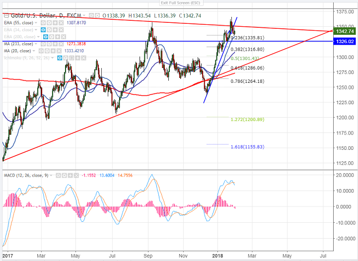 - Gold was shown a see- saw ride yesterday. The yellow metal has shown a jump of almost $13 and shown good selling from the yesterday high. US dollar index has declined till 88.91 after high of 89.64. Gold is currently trading around $1342.65.
