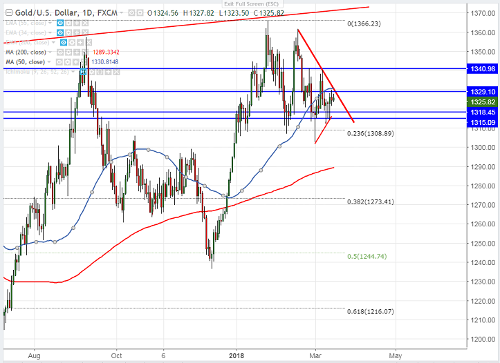 - The near term resistance is around $1330.50 (50- day MA) and any break above will take the yellow metal till ay $1341/$1348/$1355. Overall bullish continuation only above $1366.